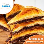 Masa hojaldrada con relleno de crema de chocolate y avellanas.